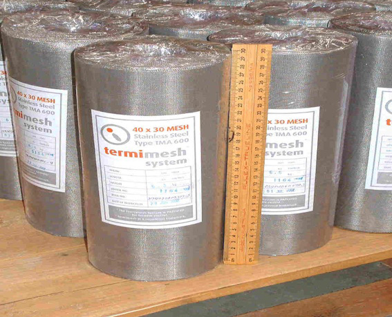 - Termimesh is an extremely durable TMA725 grade stainless steel mesh. This alloy is of considerably higher quality than standard marine grade stainless steel and resistant to electrolysis, oxidation and chemical substances excreted by termites.